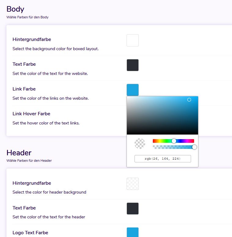 Mit der integrierten Farbauswahl können Sie die Farbe fast aller Elemente Ihrer Webseite schnell ändern, ohne eine einzige Codezeile schreiben zu müssen.